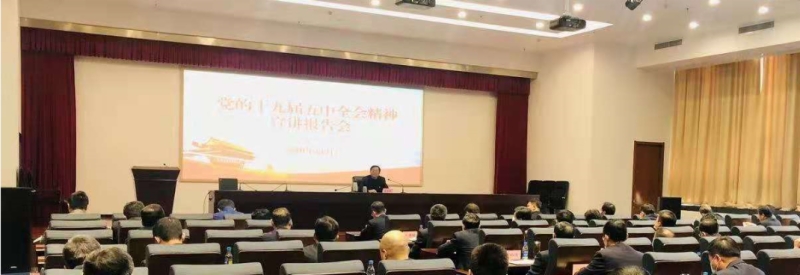 为深入学习宣传贯彻党的十九届五中全会精神,根据《中共山东省国资委委员会关于在省属企业开展党的十九届五中全会精神宣讲工作的通知》要求,11月25日,山东铁投集团举行党的十九届五中全会精神集中宣讲报告会。集团在济领导班子成员、外部董事,集团机关在济全体员工、各权属单位领导班子成员、中层副职及以上领导人员共计100余人参加会议。集团党委书记、董事长姜长兴(集团宣讲团团长)作宣讲报告。省国资委党委对省属企业做好党的十九届五中全会精神宣讲工作高度重视,监督与稽查工作处一级主任科员邢卫同志亲自到会指导宣讲工作。