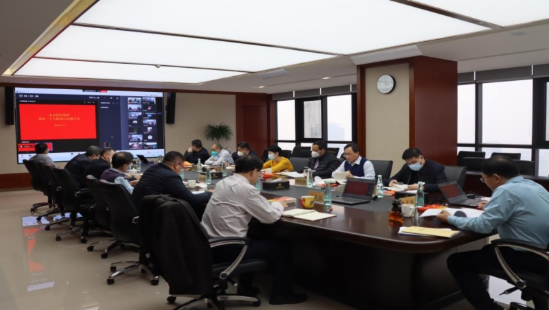 集团领导王基全、金海明、周宪东、杨俊泉、窦玉硕,集团高管以及办公室、党群部门负责同志在主会场参会,集团机关全体人员、各权属单位中层副职以上人员共200余人通过线上形式参加会议。