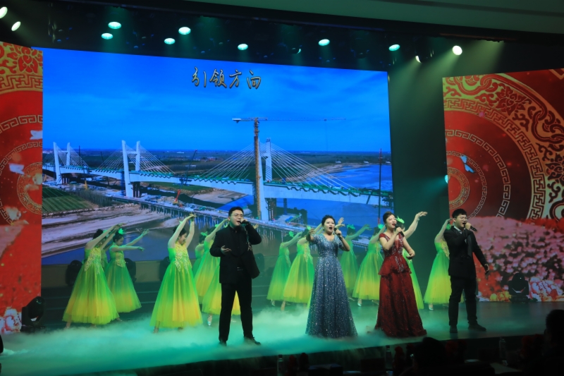 最后,联欢会在歌舞《阳光路上》的恢弘旋律中圆满落幕,全体演职人员与现场观众共同唱响对新年的美好祝福。集团领导班子成员等到场领导走上舞台与演职人员合影留念。