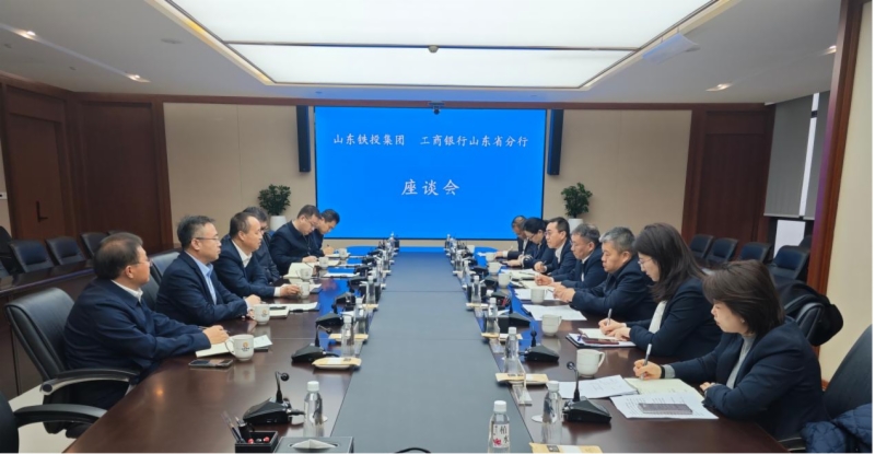 3月5日上午,山东铁投集团党委书记、董事长王卫中在集团总部大楼会见中国工商银行山东省分行党委书记、行长李峰一行,双方围绕深化银企战略合作、赋能铁路建设与产业转型进行深入交流。中国工商银行山东省分行党委委员、副行长兼济南分行党委书记、行长张晓瑞,集团党委委员、副总经理赵春雷,财务总监秦言坡参加座谈。
