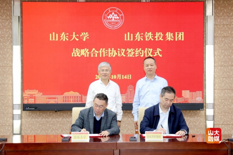 10月14日下午,山东铁投集团与山东大学战略合作协议签约仪式在山东大学中心校区举行。山东大学校长李术才,集团党委书记、董事长王卫中出席活动并致辞。山东大学常务副校长吴臻主持签约仪式。