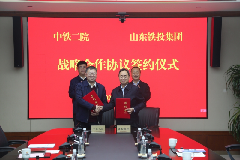 12月24日下午,山东铁投集团与中铁二院在集团总部大楼签署战略合作协议。中铁二院党委书记、董事长杜建军,山东铁投集团党委书记、董事长王卫中出席并见证签约。中铁二院党委常委、副总经理梁春祥,山东铁投集团党委委员、副总经理杨俊泉代表双方签约。