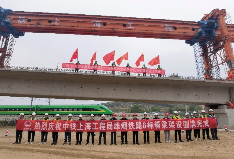 各参建单位在施工过程中克服了胶东半岛大风暴雪天气、运架梁设备反复穿越隧道和市区、反复跨越潍莱高铁、海青铁路、龙烟铁路、青荣城际等繁忙运营线路带来的各种困难;尤其是在跨越青烟直通线地段,面临半径500米小曲线、纵向-29.82‰大坡度的施工工况,极大增加了箱梁架的安全风险,全体参建人员经受住了严峻考验,大家团结一致,不懈努力,辛勤付出,最终迎来了潍烟高铁全线桥梁贯通!