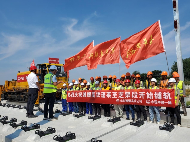 由山东铁投集团潍烟高铁公司投资建设、中铁一局承揽铺轨施工任务的潍烟高铁线路长度237.3公里,共设10座车站,设计时速350公里,上下行正线共473.8铺轨公里,站线28.3铺轨公里,道岔铺设121组。全线于2023年6月30日开始长轨铺设,8月28日完成蓬莱至昌邑段双线340铺轨公里施工任务。