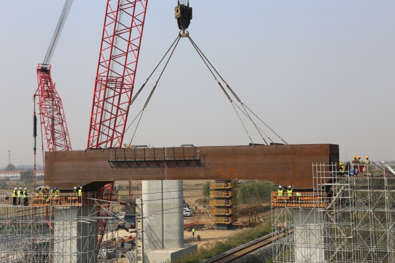 10月17日11时40分,随着一声“就位完毕”口令,济滨高铁商惠滨2号特大桥1724#墩上跨德大铁路门式墩钢盖梁精准吊装就位,标志着该标段重难点控制性工程取得重大进展,为项目后续架梁、铺轨顺利进行提供坚实保障。