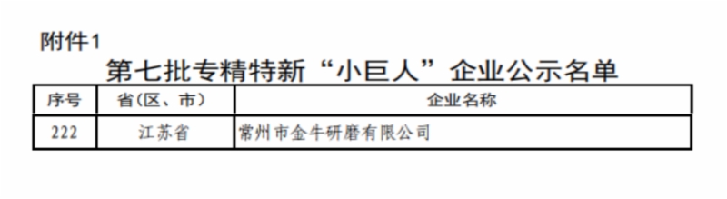 近日,工信部2025年国家级专精特新“小巨人”企业名单公布,山东铁投集团权属博深股份公司子公司常州市金牛研磨有限公司(简称金牛研磨)成功入选2025年专精特新“小巨人”企业名录。