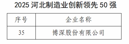 近日,京津冀产业链供应链创新发展峰会暨百强企业高质量发展大会在河北石家庄召开。大会发布2025系列产业榜单,山东铁投集团权属博深股份有限公司(以下简称“博深股份公司”)成功入选“2025河北制造业创新领先50强”,位列第35位。这一荣誉不仅是对博深股份公司创新发展成果的省级权威认证,更是博深股份公司在培育新质生产力道路上稳步前行的生动体现。
