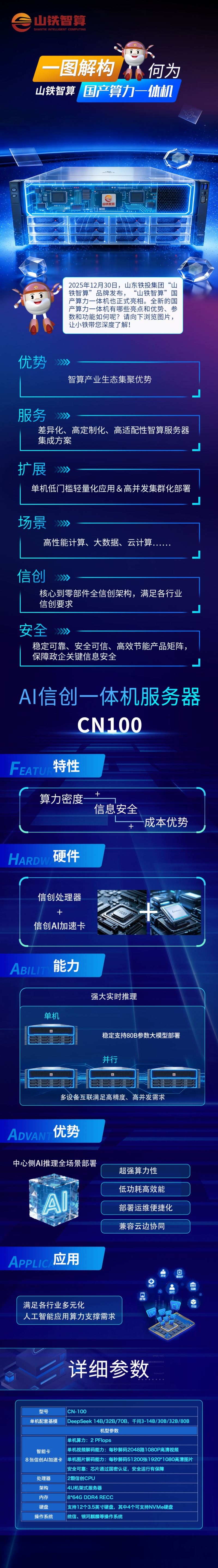 2025年12月30日,山东铁投集团“山铁智算”品牌发布,“山铁智算”国产算力一体机也正式亮相。全新的国产算力一体机有哪些亮点和优势、参数和功能如何呢?请向下浏览图片,让小铁带您深度了解!